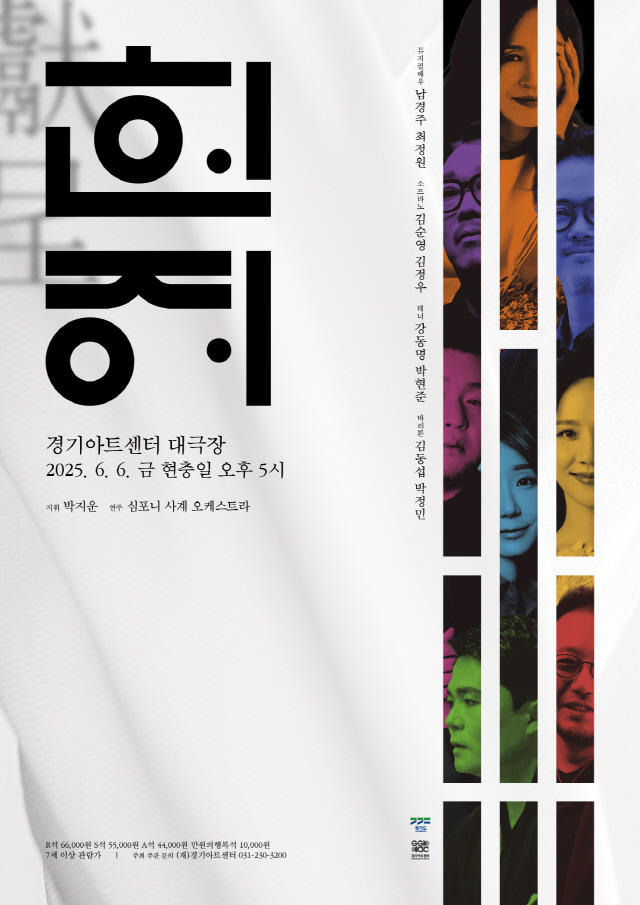 경기아트센터가 2025년 6월 6일 현충일을 맞아 '뮤페라 갈라콘서트 <헌정(獻呈)>'을 개최합니다. 뮤지컬과 오페라, 한국 가곡이 한 무대에서 어우러지는 이번 공연은 예술을 통해 순국선열을 추모하고 관객에게 깊은 감동을 전하는 헌정의 시간입니다.