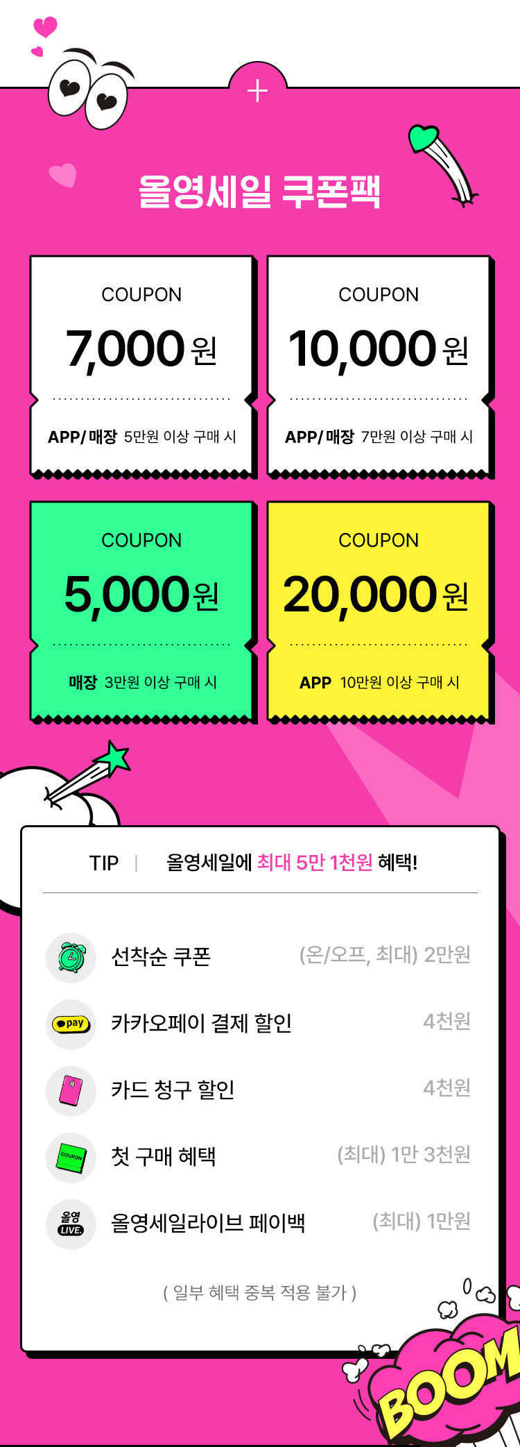 - 혜택 적용 순서: 쿠폰 → 카드결제 → 페이백까지!