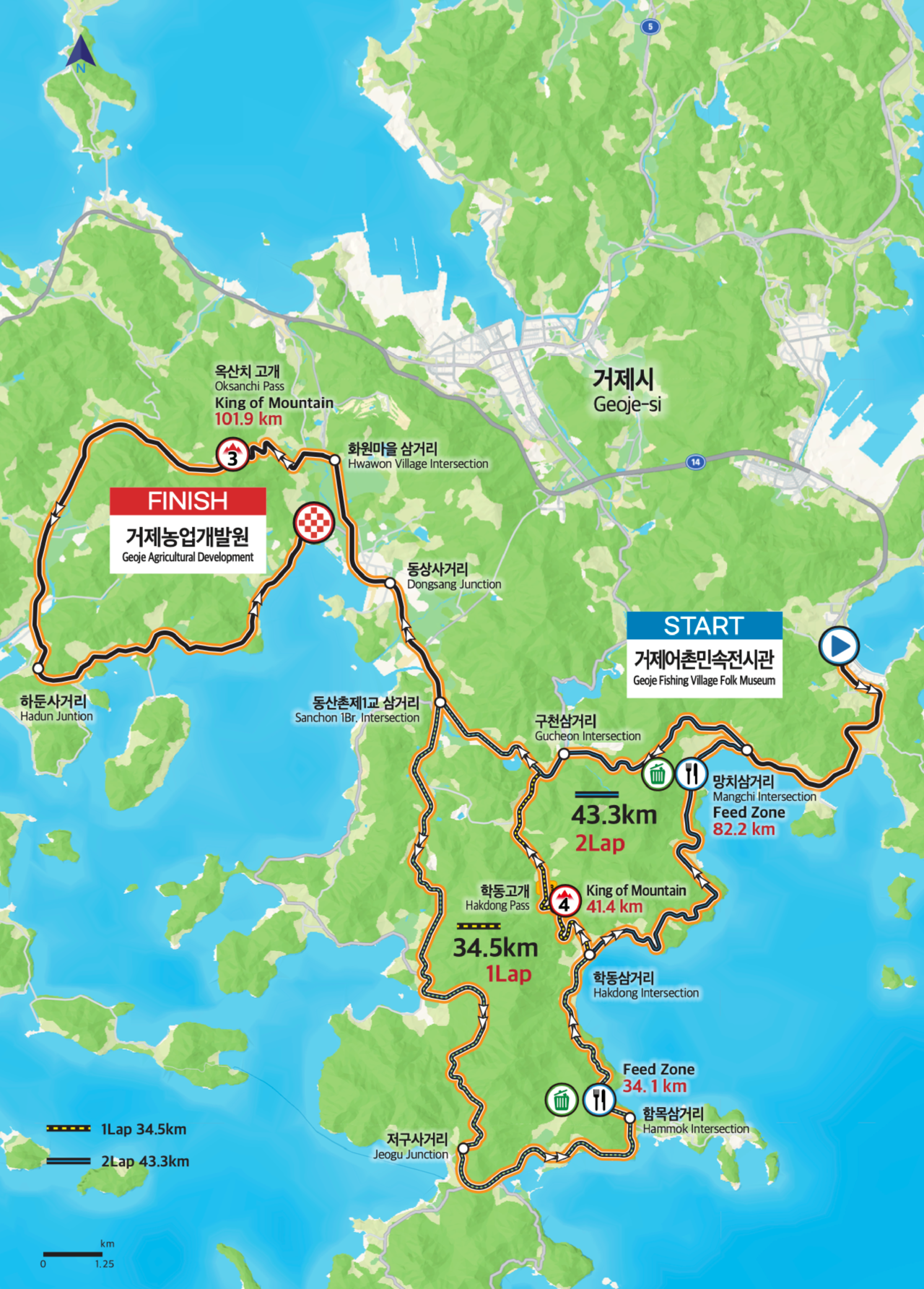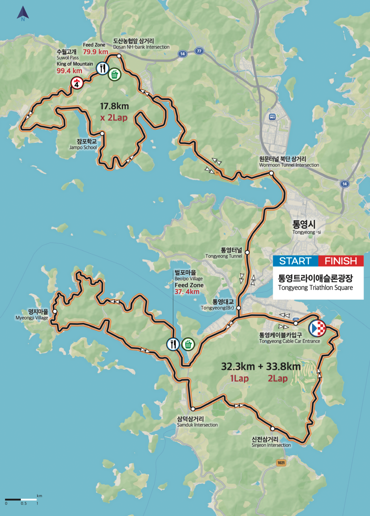 - 통영 트라이애슬론 광장 - 산양읍 - 통영대교 - 수월리 - 도산면 - 통영 트라이애슬론 광장