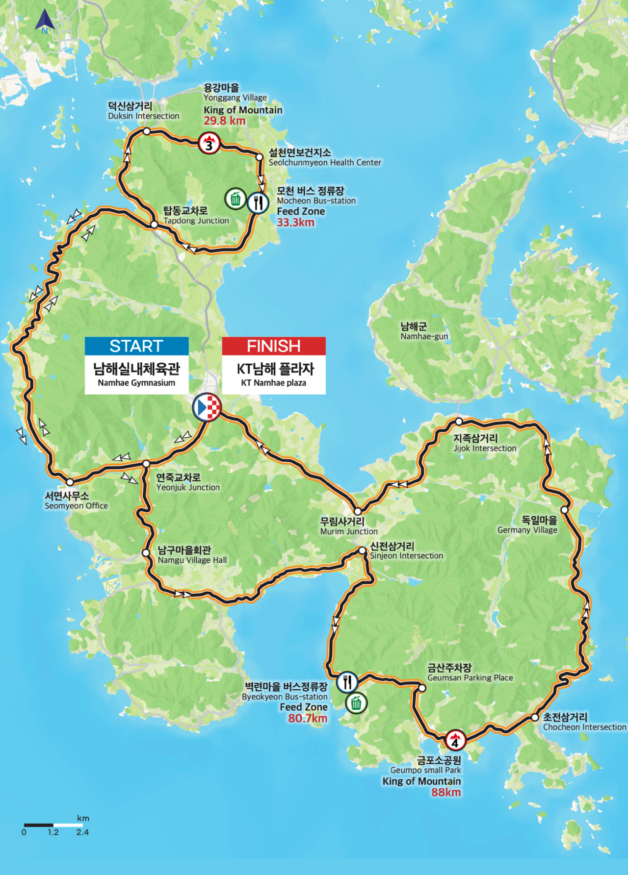 총 553.6km의 코스를 달리는 이번 대회는 경남의 아름다운 남해안과 관광지를 배경으로 한 박진감 넘치는 레이스가 될 것입니다.