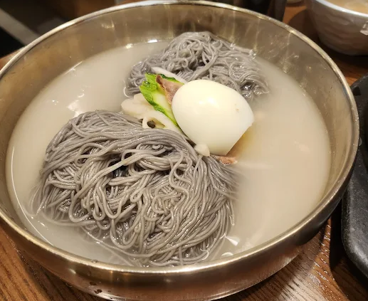 능라도 본점의 평양냉면은 진한 육수와 부드러운 면발로 정통 평양냉면의 깊은 맛을 느낄 수 있습니다.
